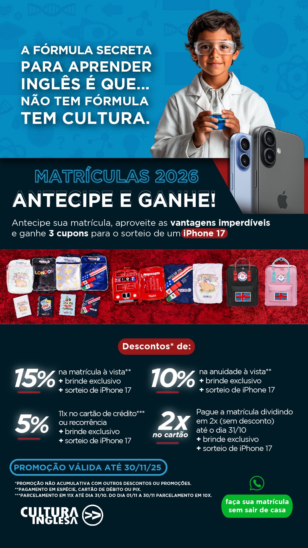 A Cultura Inglesa é uma instituição com mais de 80 anos de atuação. Presente na maioria dos estados do Brasil, traduz excelência no ensino do inglês, com professores capacitados continuamente e tecnologia educacional de última geração.