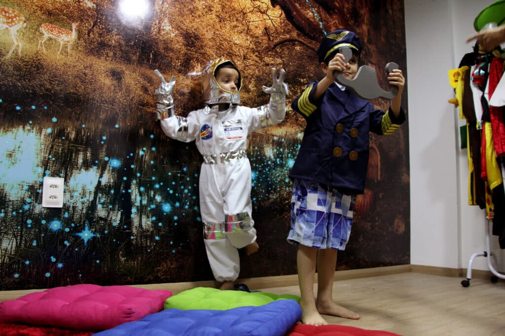 Neste espaço, os alunos e os professores usarão da imaginação e de fantasias para contar histórias, criar situações do dia a dia e fazer atividades lúdicas usando o inglês. É um espaço ambientado para despertar a criatividade e imaginação do aluno.